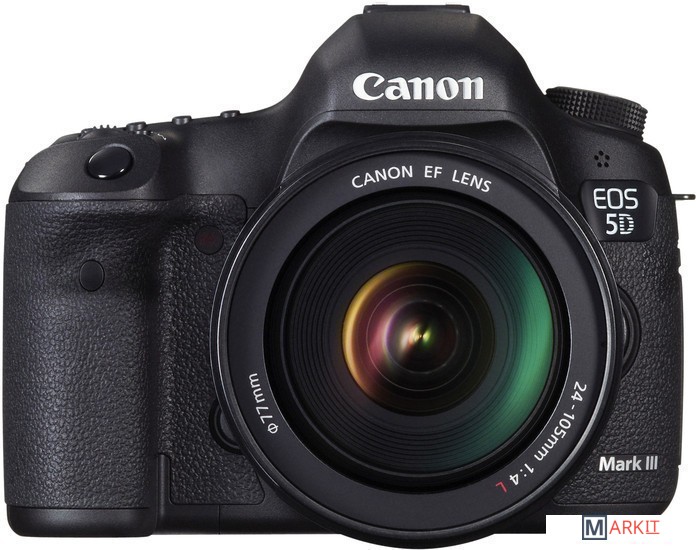 Полнокадровая цифровая зеркальная камера, предназначенная для опытных любителей, профессиональных фотографов и видеооператоров. Преемник успешной модели EOS 5D Mark II. Фотоаппарат имеет 22.3 Мп. CMOS-сенсор размером 36 х 24 мм, 14-битный процессор DIGIC 5+, 61-точечный автофокус. Для контроля за съемкой используется большой экран 3.2" с разрешением 1040000 пикселей и оптический видоискатель со 100% покрытием кадра. Диапазон обрабатываемой камерой чувствительности составляет 100–102400 ISO, режим серийной съемки со скоростью 6 кадров/сек. Камера умеет снимать видео в формате Full-HD с полным ручным управлением — от частоты кадров до звуковой дорожки, что делает ее мощным инструментом даже для профессиональной съемки видеороликов. Имеется два слота для карт памяти CF и SD. Корпус выполнен из магниевого сплава. Комплект с объективом Canon EF 24-105mm f/4L IS USM.