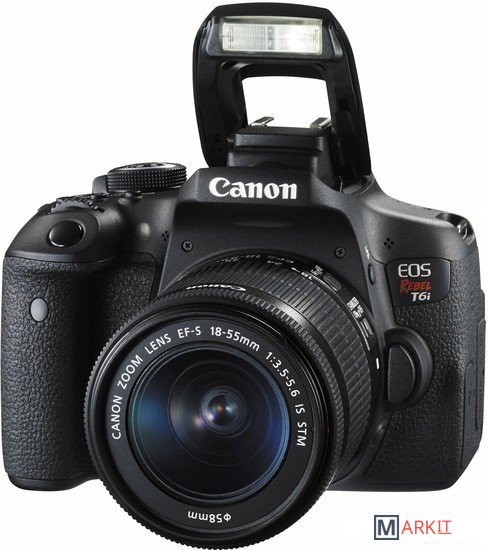 Компактная зеркальная камера любительского уровня. Аппарат имеет 24 Мп. CMOS-матрицу, процессор DIGIC 6 и встроенный Wi-Fi с поддержкой NFC. Диапазон обрабатываемой камерой чувствительности составляет ISO 100–12800, используется технология обнаружения мерцаний. Система автофокуса имеет 19 крестовых датчиков, серийная съемка идет со скоростью 5 кадров в секунду. Комплект с объективом Canon EF-S 18-55mm f/3.5-5.6 IS STM.
