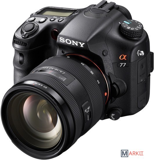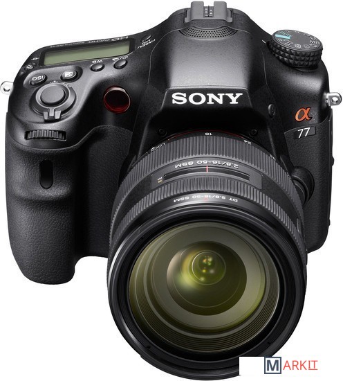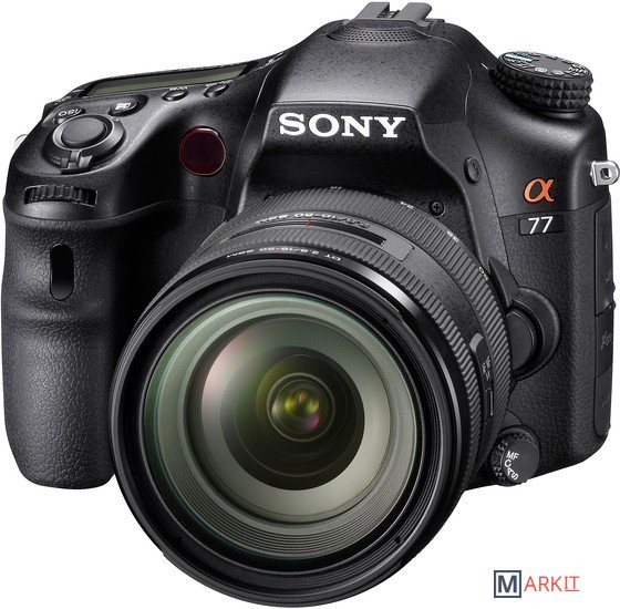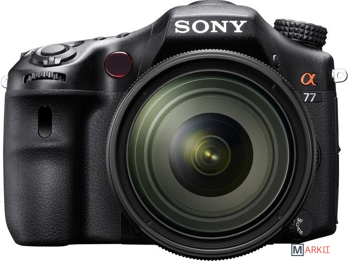 Зеркальный цифровой фотоаппарат для продвинутых пользователей. SLT-A77 стал значительным шагом в развитии концепции фотоаппаратов с неподвижным полупрозрачным зеркалом, получив крупный и яркий электронный видоискатель с разрешением 2.4 млн. пикселей, возможность съёмки со скоростью до 12 кадров в секунду, а также новый 24 Мп. CMOS-сенсор. Так же камера получила систему стабилизации сенсора, 19-точечную систему фокусировки, пылевлагозащищённый корпус и поворотный ЖК-дисплей. Версия без модуля GPS. Комплект с объективом Sony SAL-1650.