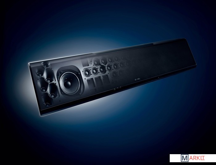 4 см (массив динамиков для горизонтальных звуковых лучей -4 см., для вертикальных - 2.8 см.) |
